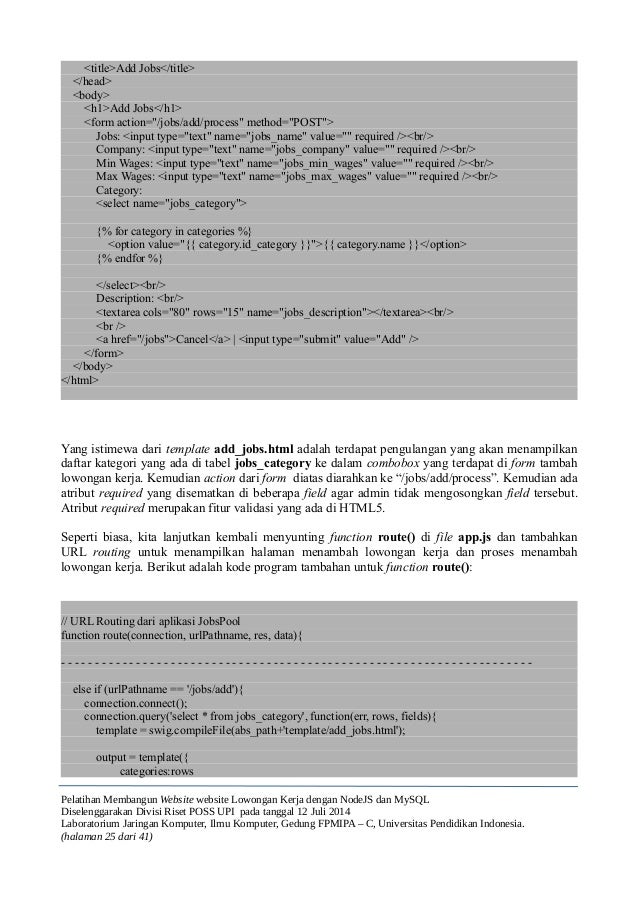 Membangun Website Lowongan Kerja Sederhana Dengan Nodejs