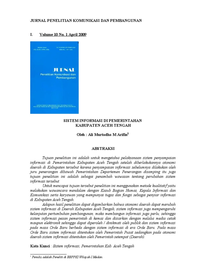 Jurnal Penelitian Komunikasi Dan Pembangunan